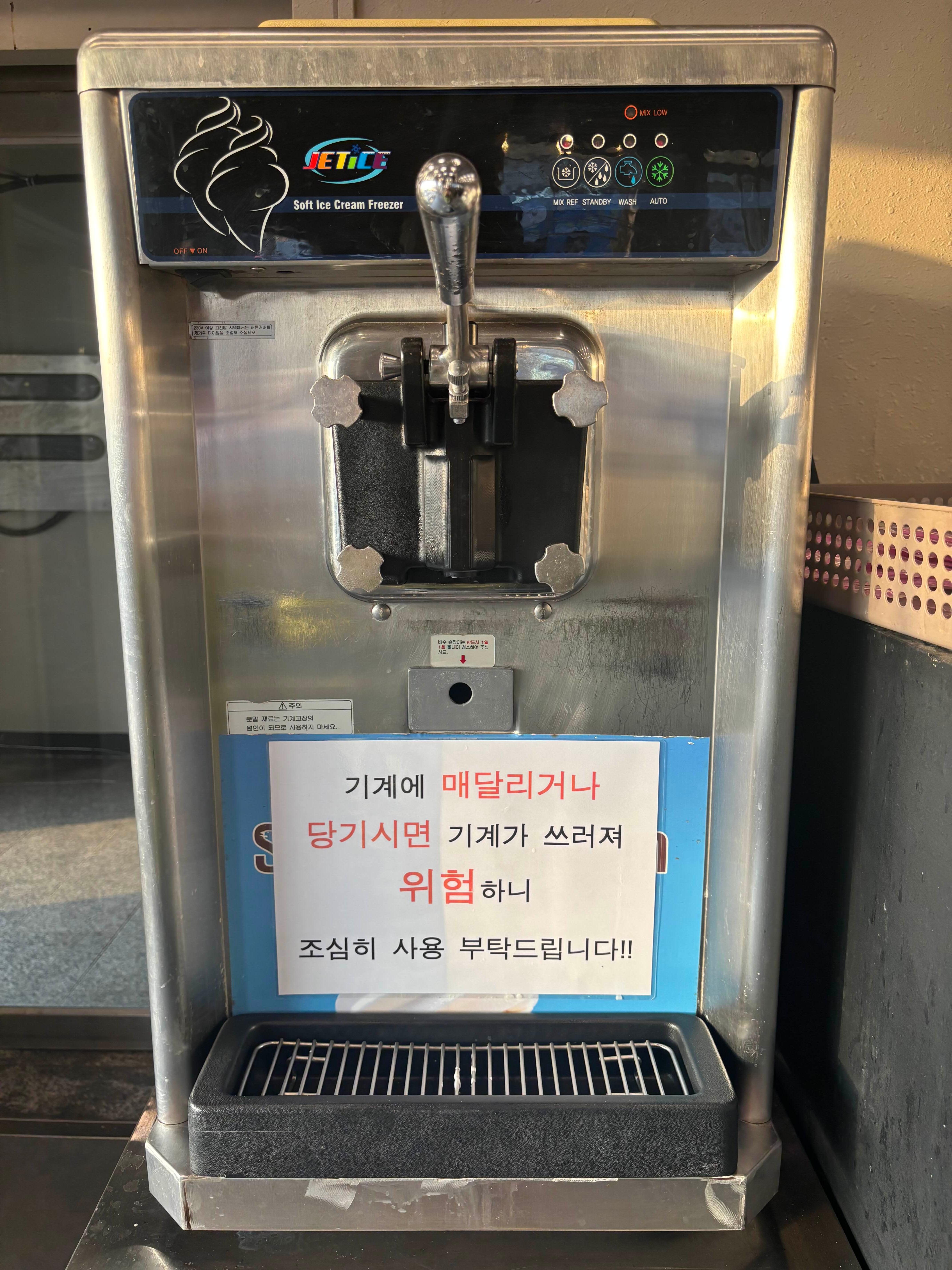 나가는 길에 바닐라 아이스크림을 먹었다.