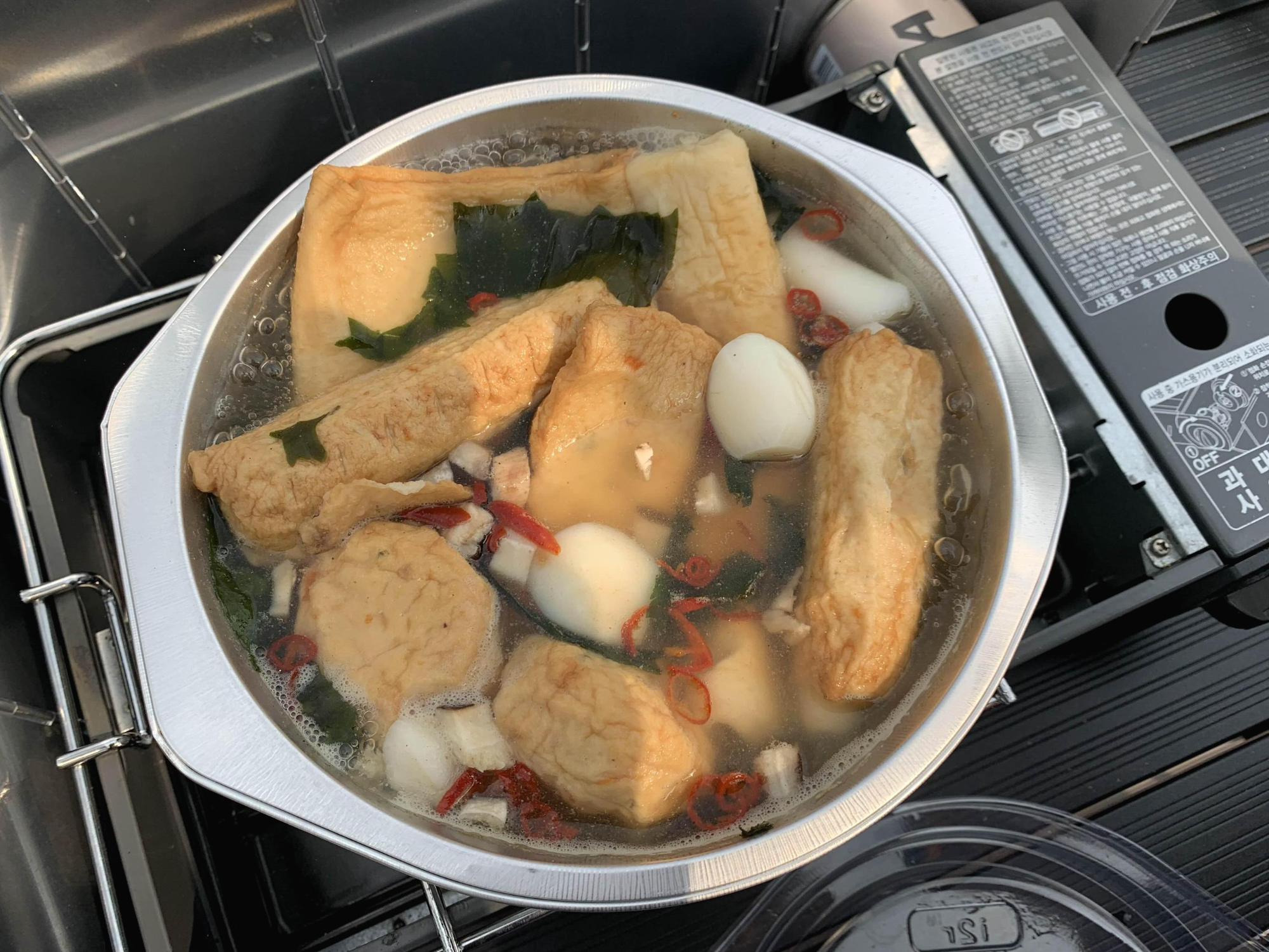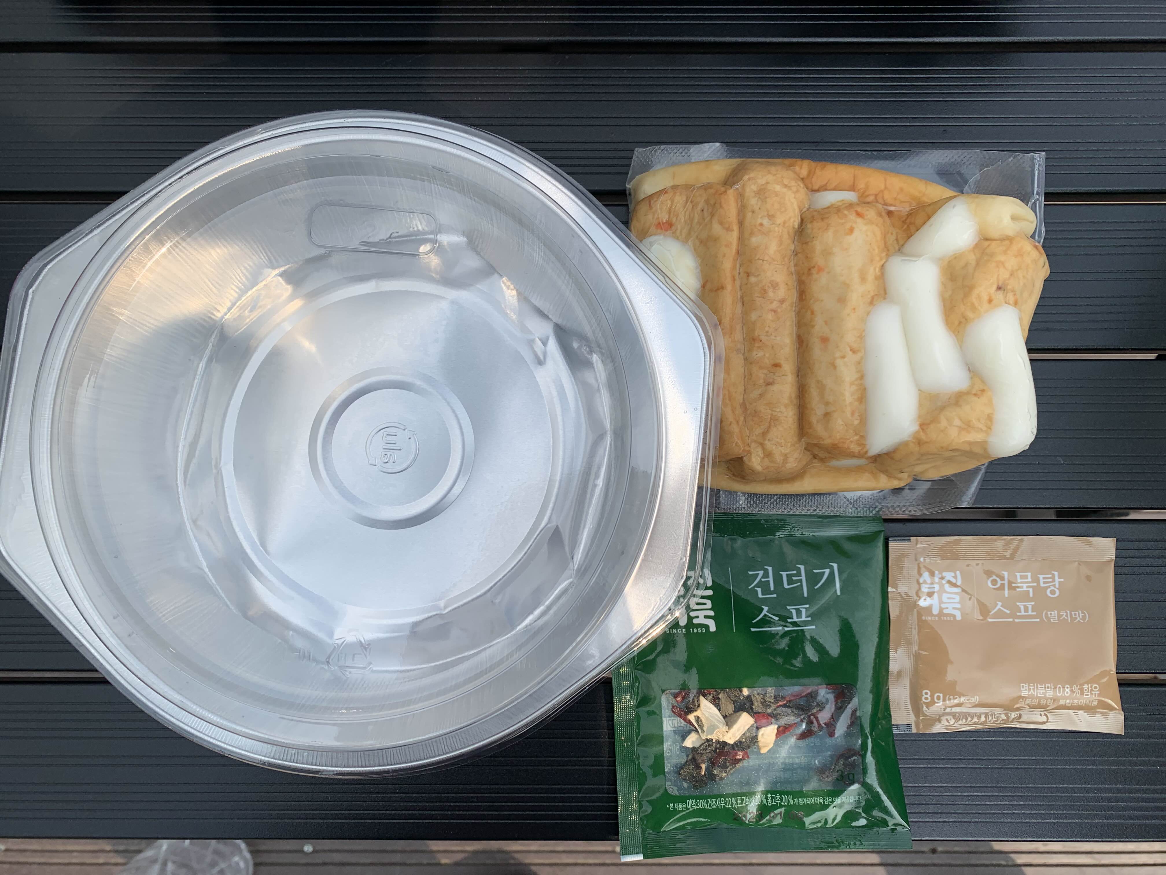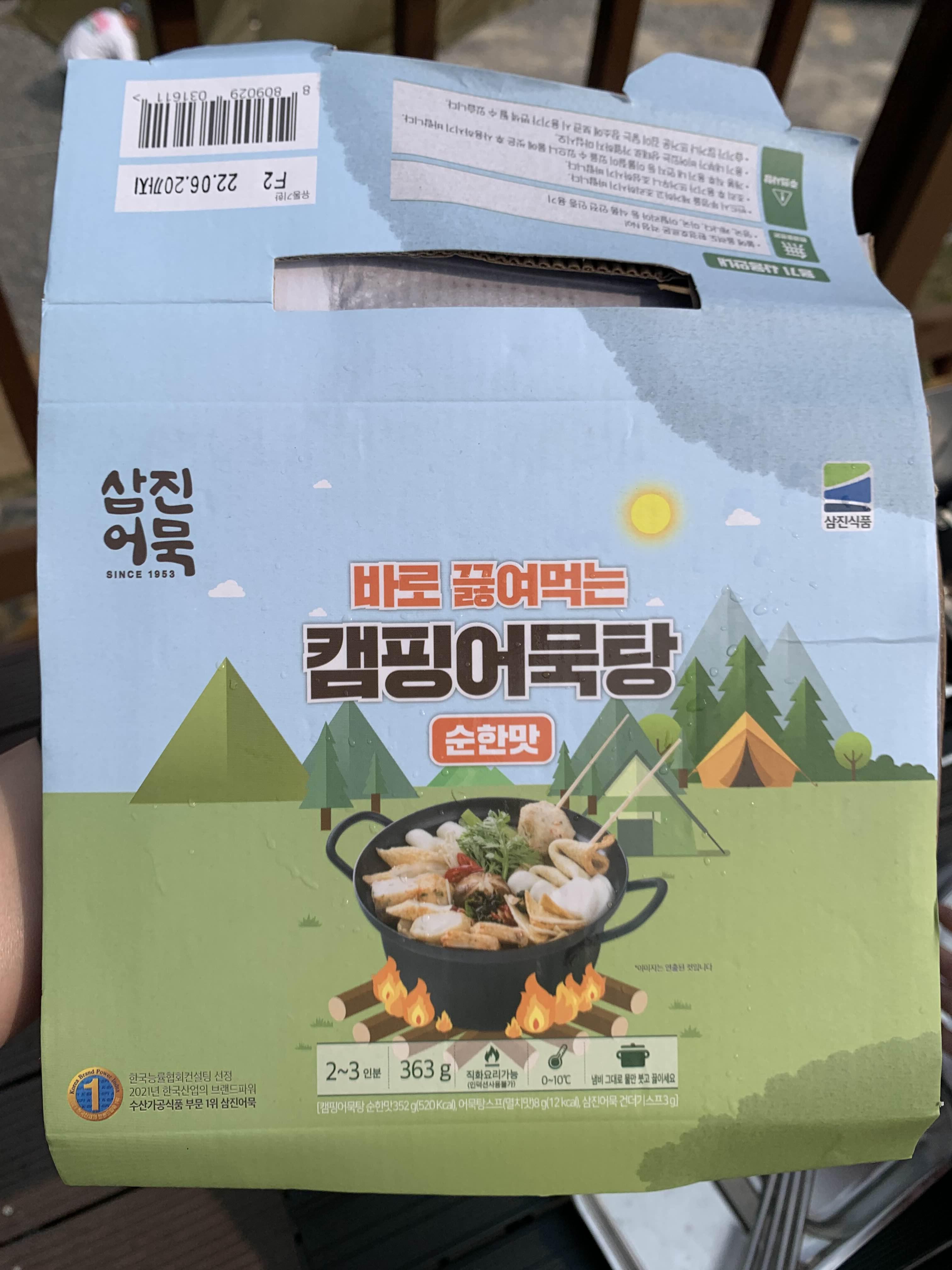다음 날 아침으로는 어묵탕을 끓여 먹었다. 냄비가 포함되어 있기 때문에 설거지가 필요 없어서 좋다.(지구에겐 조금 미안하지만😭) 들어있는 냄비에 모든 재료를 한번에 넣고 끓이기만 하면 된다. 특이하게도 미역이 들어 있는데 이 맛이 강력했다. 어묵을 곁들인 캠핑미역국이라고 이름을 바꿔야 할 듯!