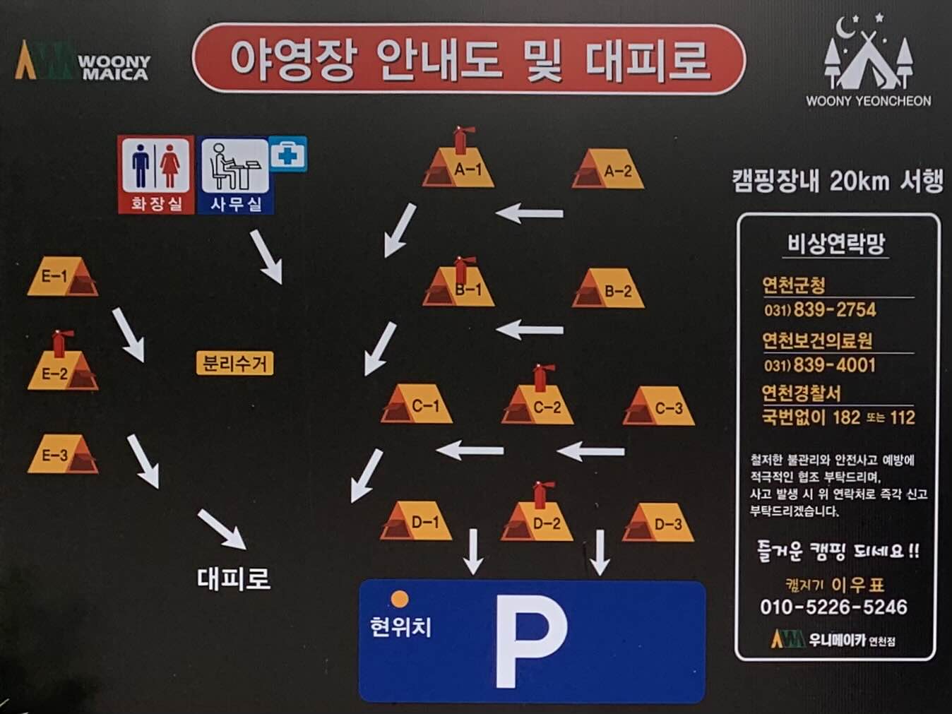 D구역. 캠핑장 입구에서 가장 가까운 곳. 사이트는 3개가 있다.