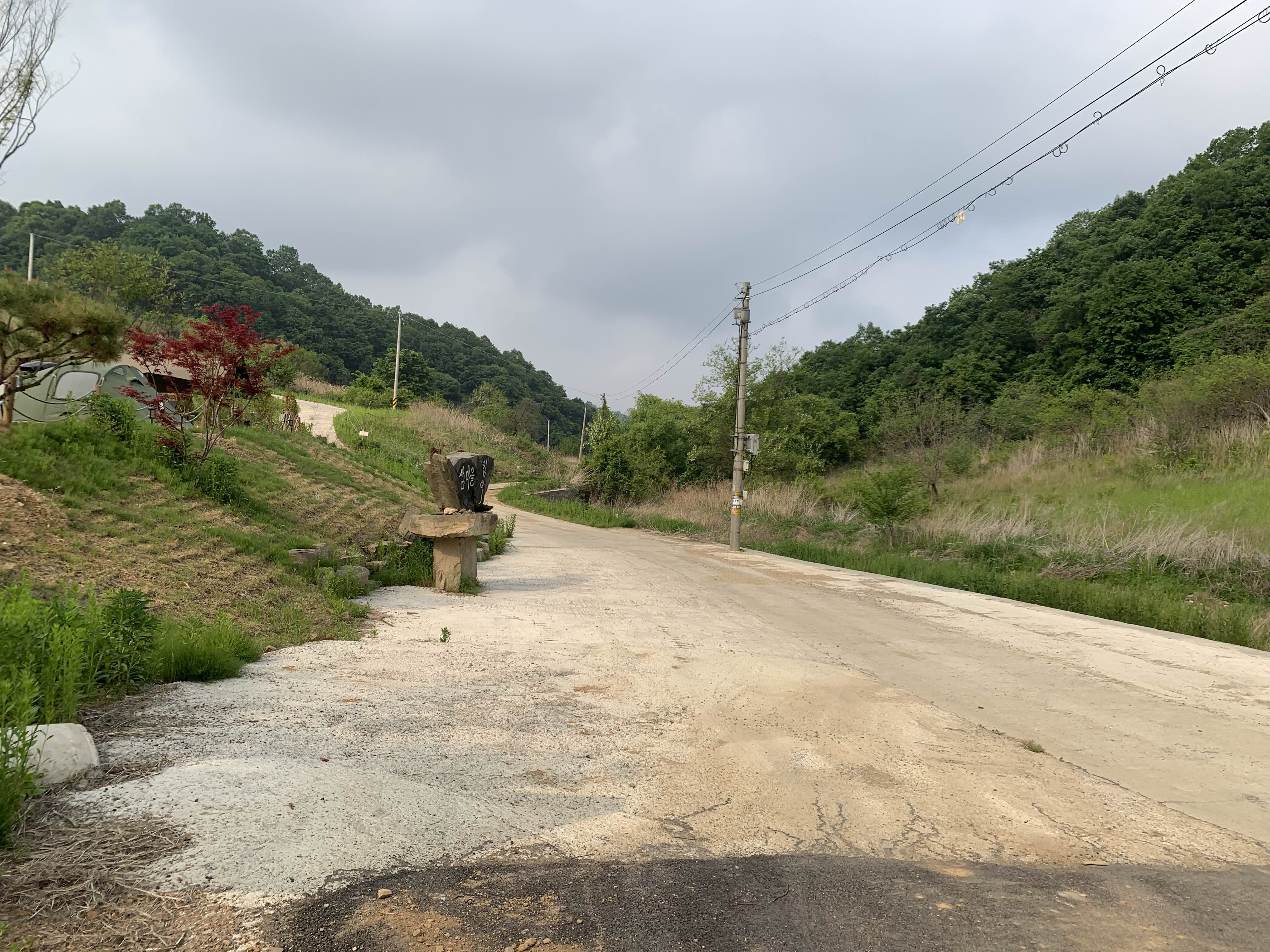 우니메이카 연천점에 거의 다다랐을 때의 길은 매우 좁다. 차가 한 대만 지나갈 수 있는 폭이어서 다른 차를 마주칠까 봐 조마조마했음. 다행히 아무도 마주치진 않았다.