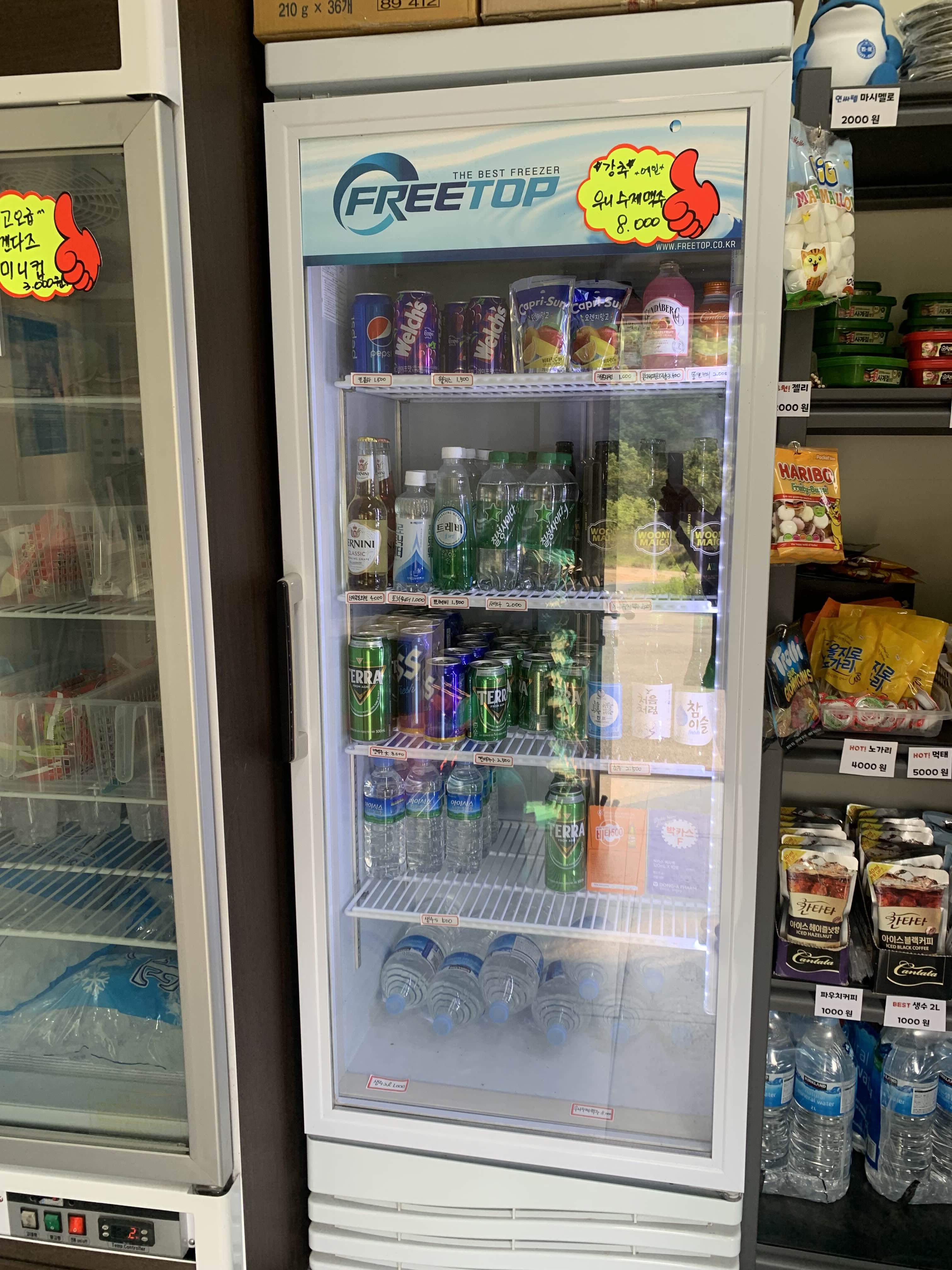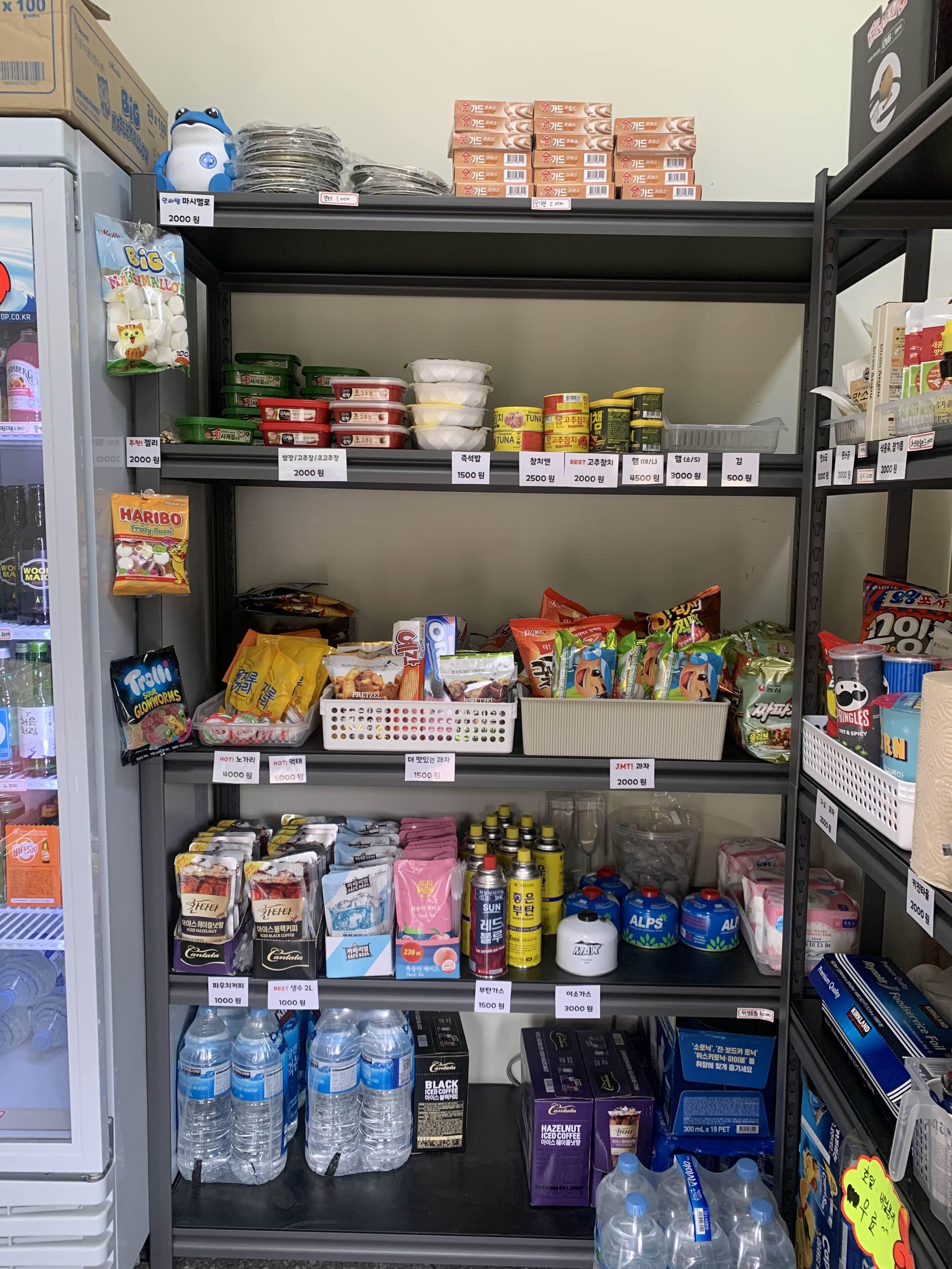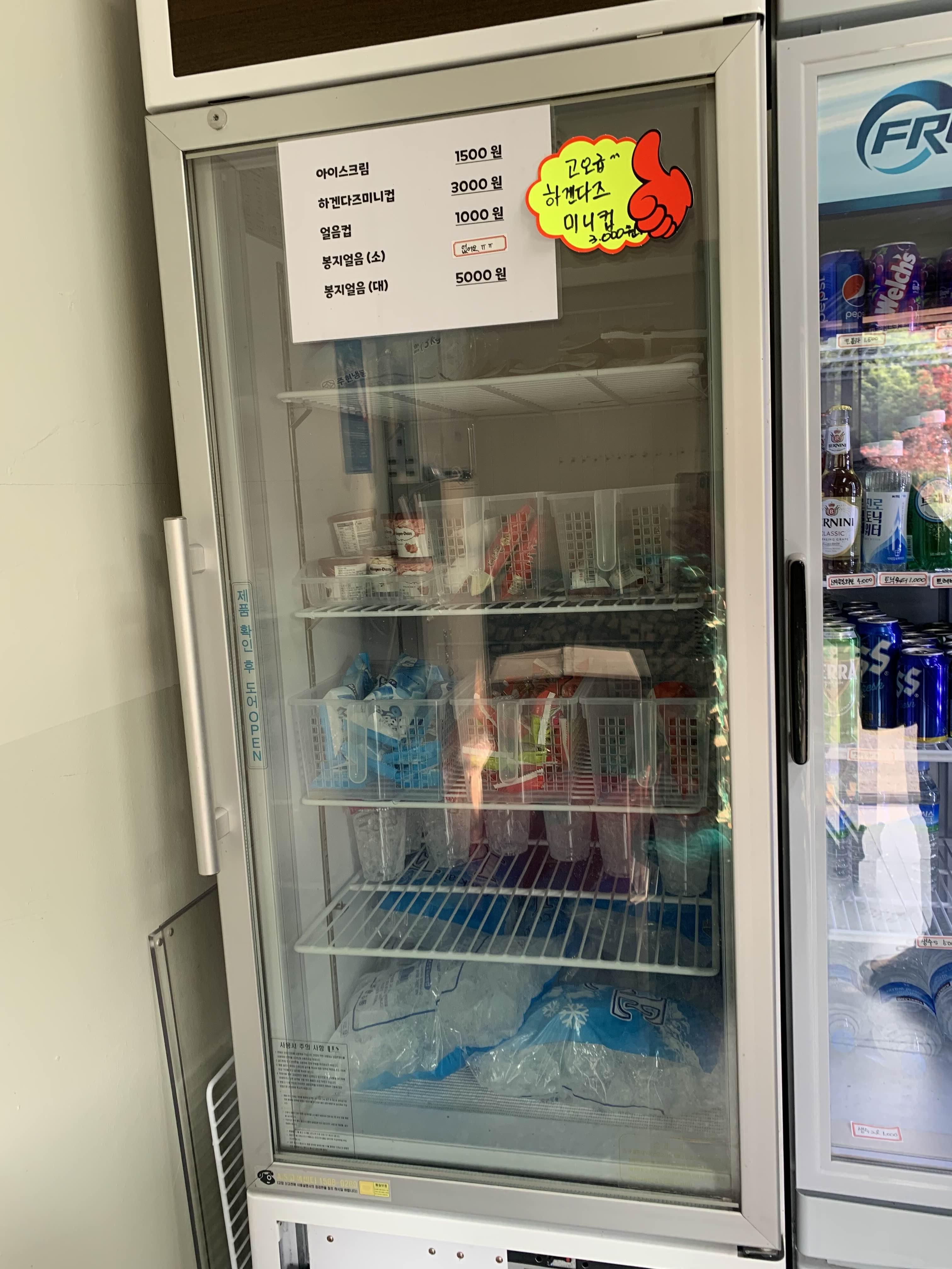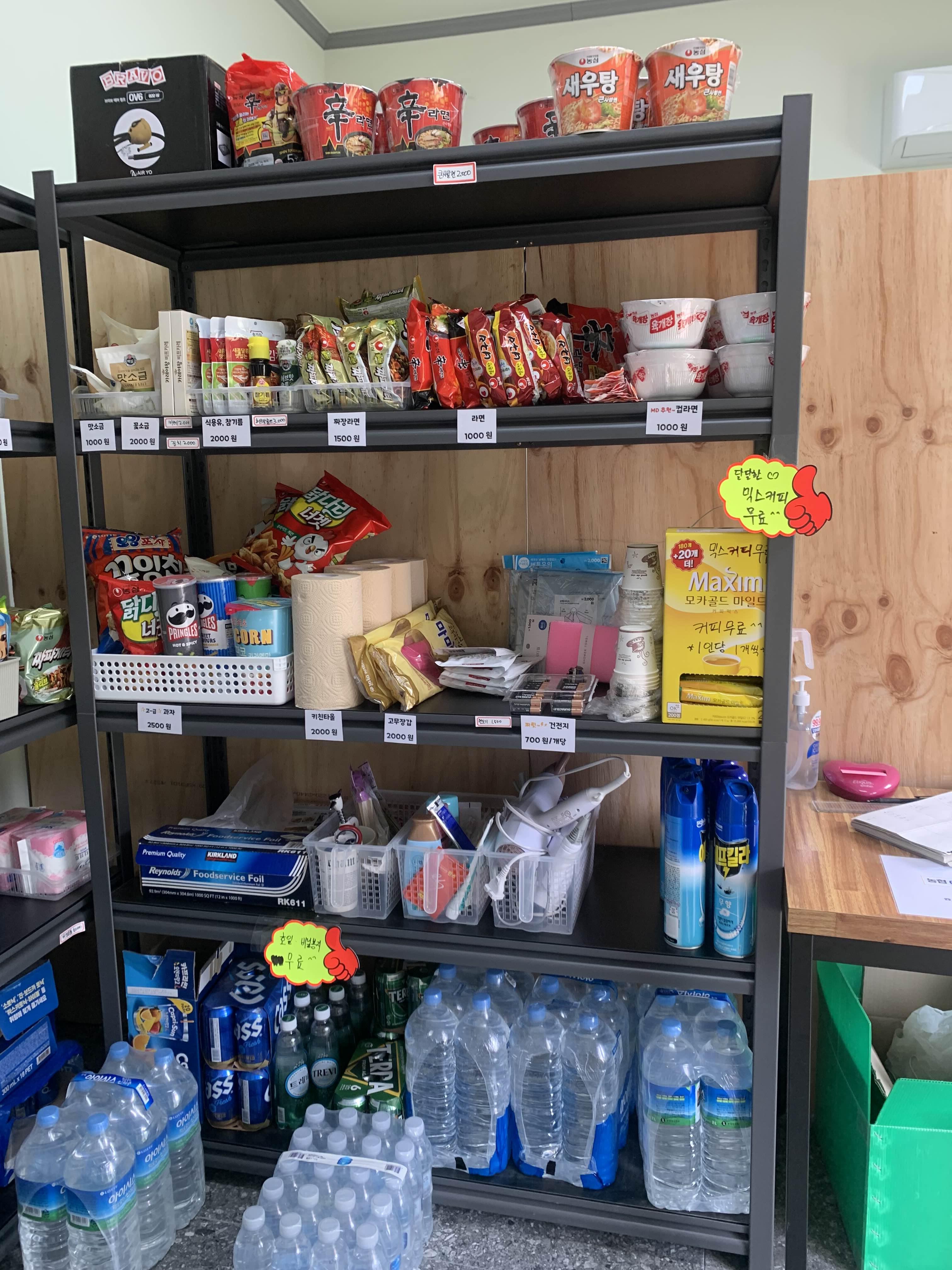 매점. 웬만한 건 다 있다. 포스팅을 하면서 발견한 건데 믹스커피 스틱을 1인에 1개씩 무료로 제공해 주시네? 우리는 봉지얼음을 여기서 구매했는데 작은 사이즈가 없다. 아주 얼음 플렉스했음! 적은 양의 얼음만 필요하다면 미리 구매해 오세용.